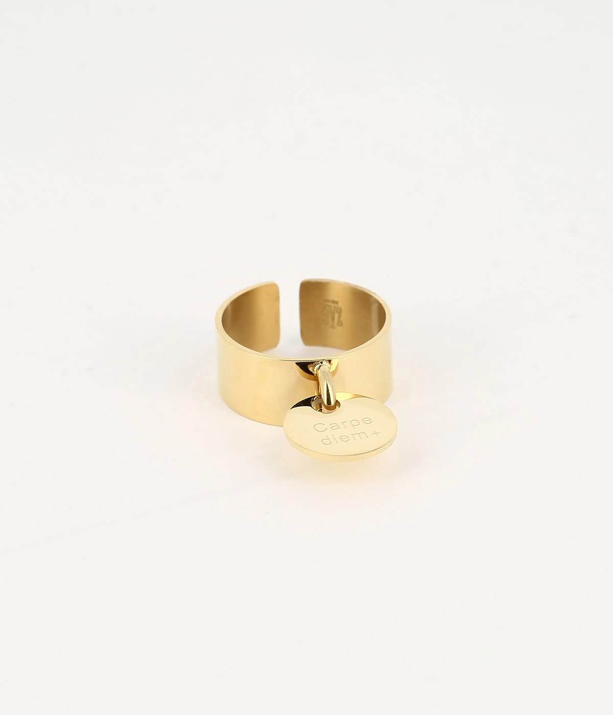Cette bague est formée d’un médaillon avec le message “Carpe diem”.