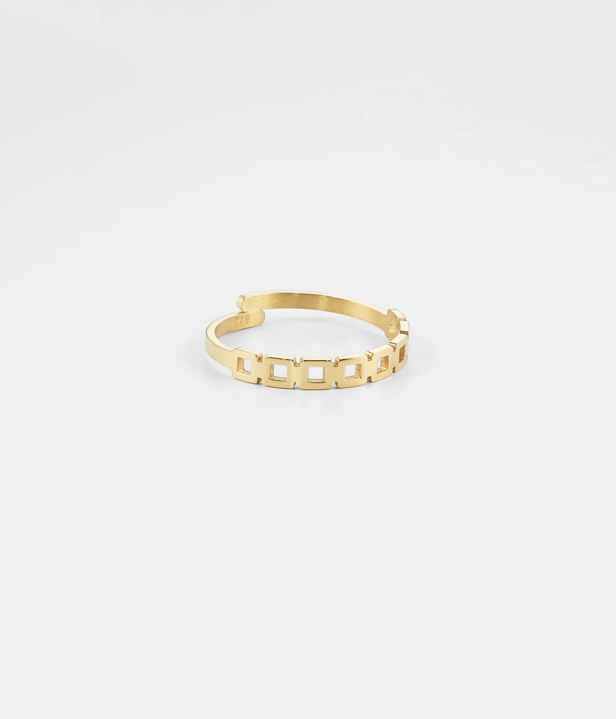 Bague ajustable aux motifs carrés en acier uni ou doré à l’or fin.
