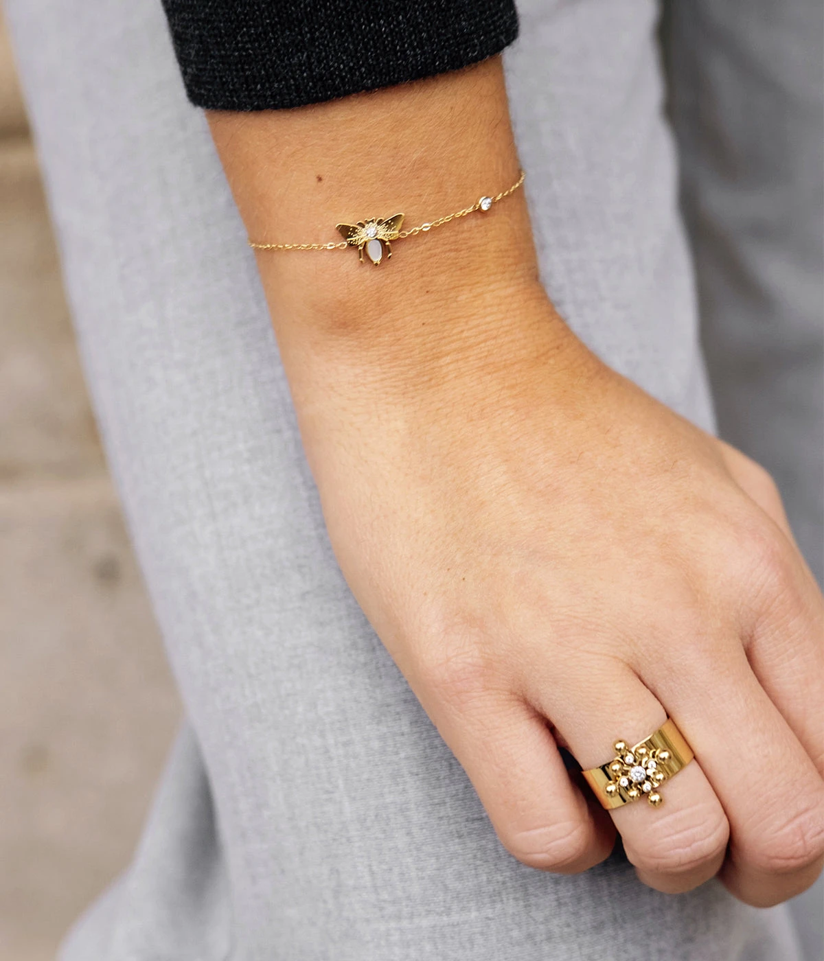 Ce bijou a beaucoup d’allure et habille toute de suite vos mains en y apportant de l’éclat.