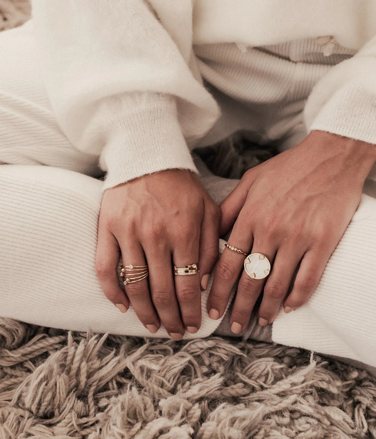 Cette bague a beaucoup de présence sur la main et nous conseillons de la porter seule.