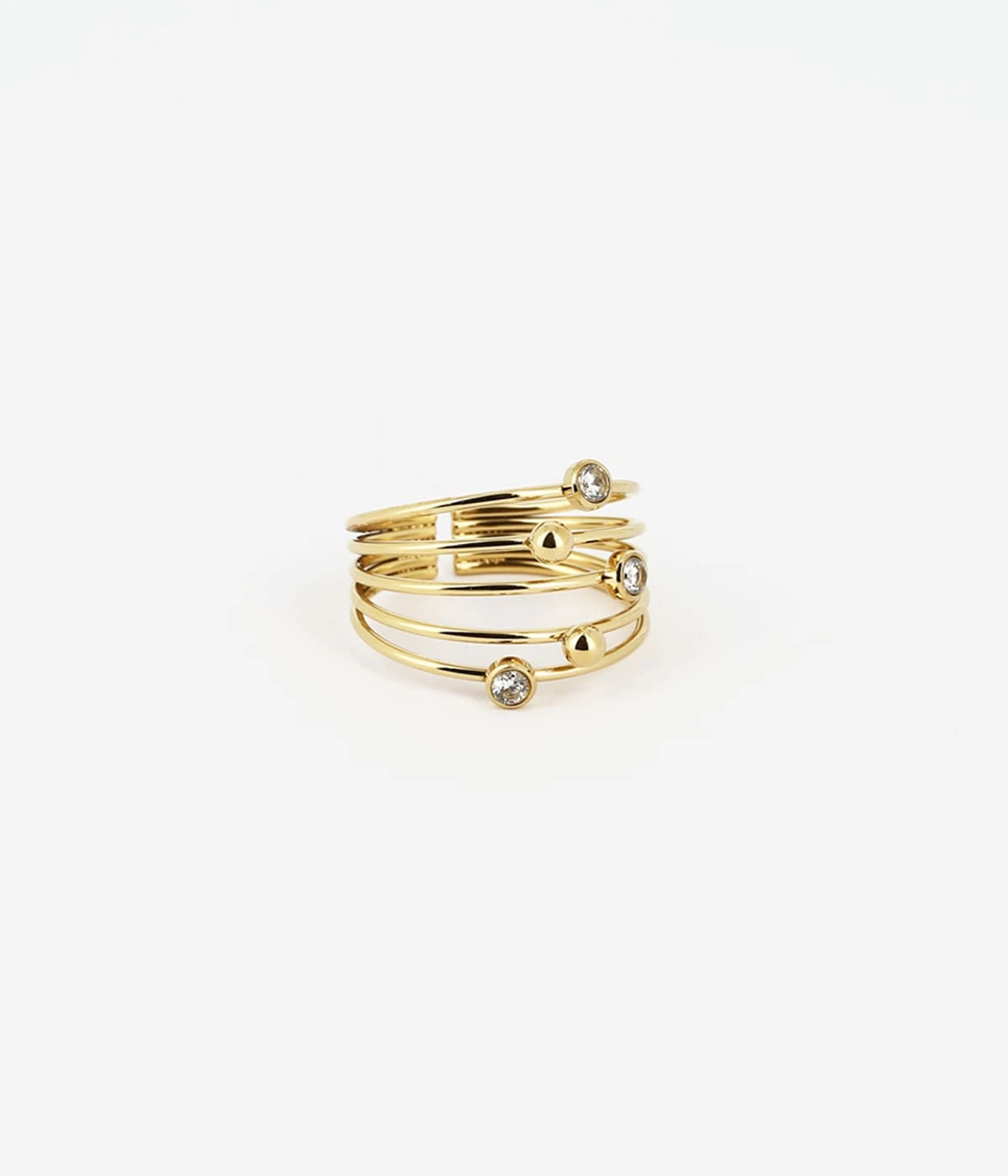 Bague ajustable en acier uni ou doré à l’or fin formée de plusieurs anneaux parsemés de zirconiums.