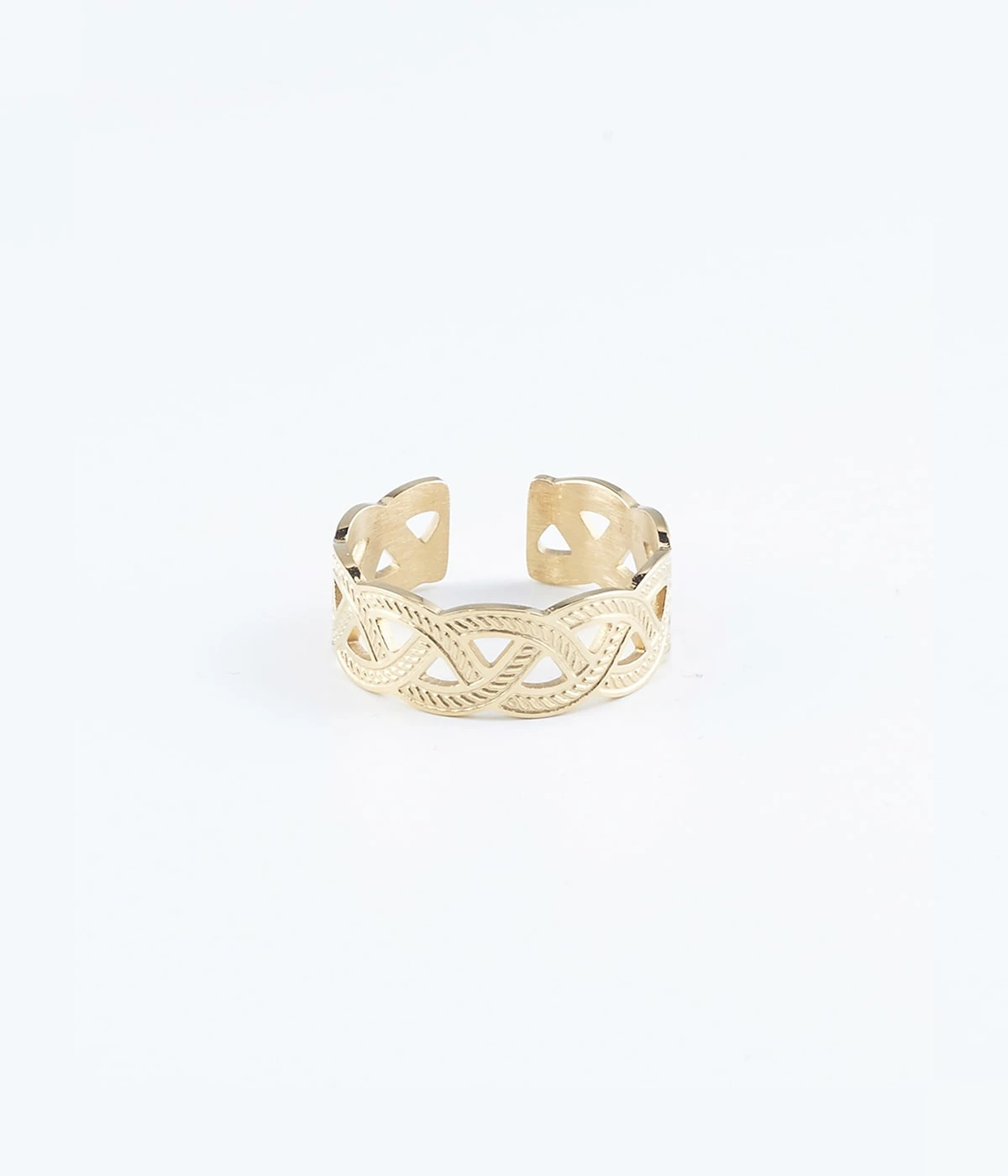 Bague jonc ajustable en acier uni ou doré à l’or fin. La bague Holbox est une grosse tresse plate finement gravée.