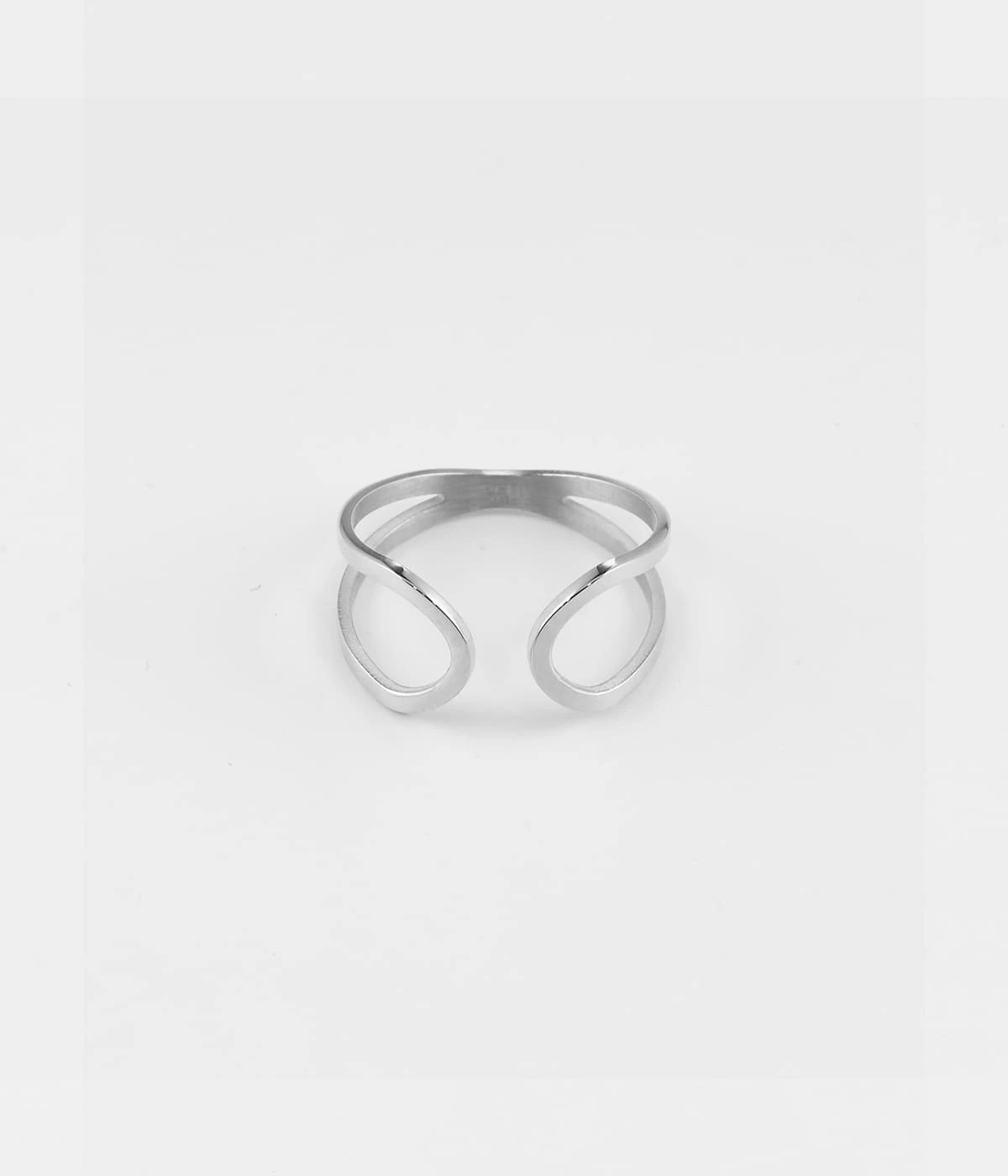 Simplicité absolue pour cette bague en acier uni ou doré à l’or fin dont le design ressemble au symbole de l’infini.