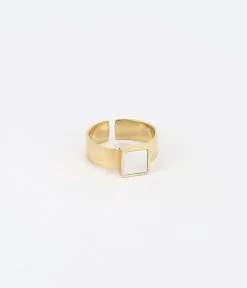 Bague large ajustable en acier uni avec en son centre une nacre.