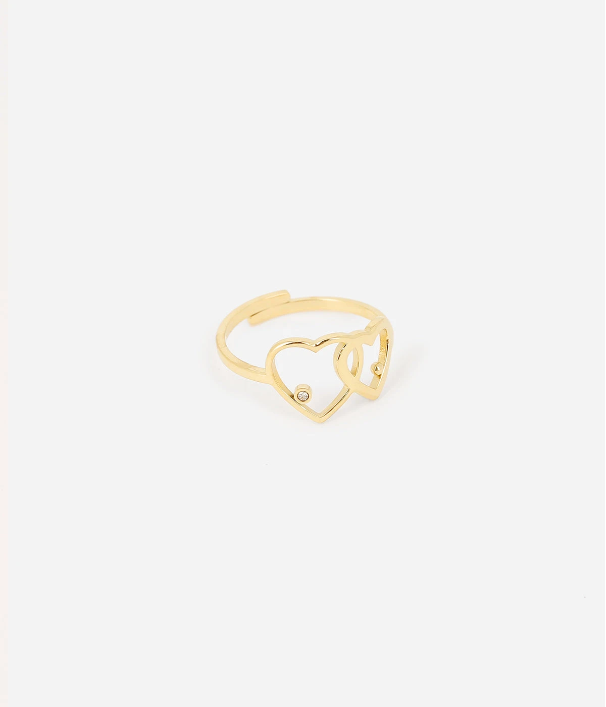 Bague en acier uni ou doré à l’or fin présentant deux coeurs l’un dans l’autre.