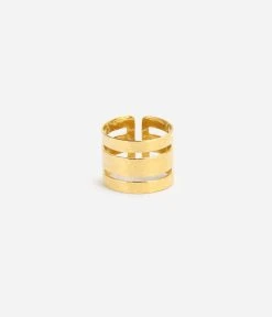 Bague large ajustable en acier doré à l’or fin à l’allure d’un cylindre.