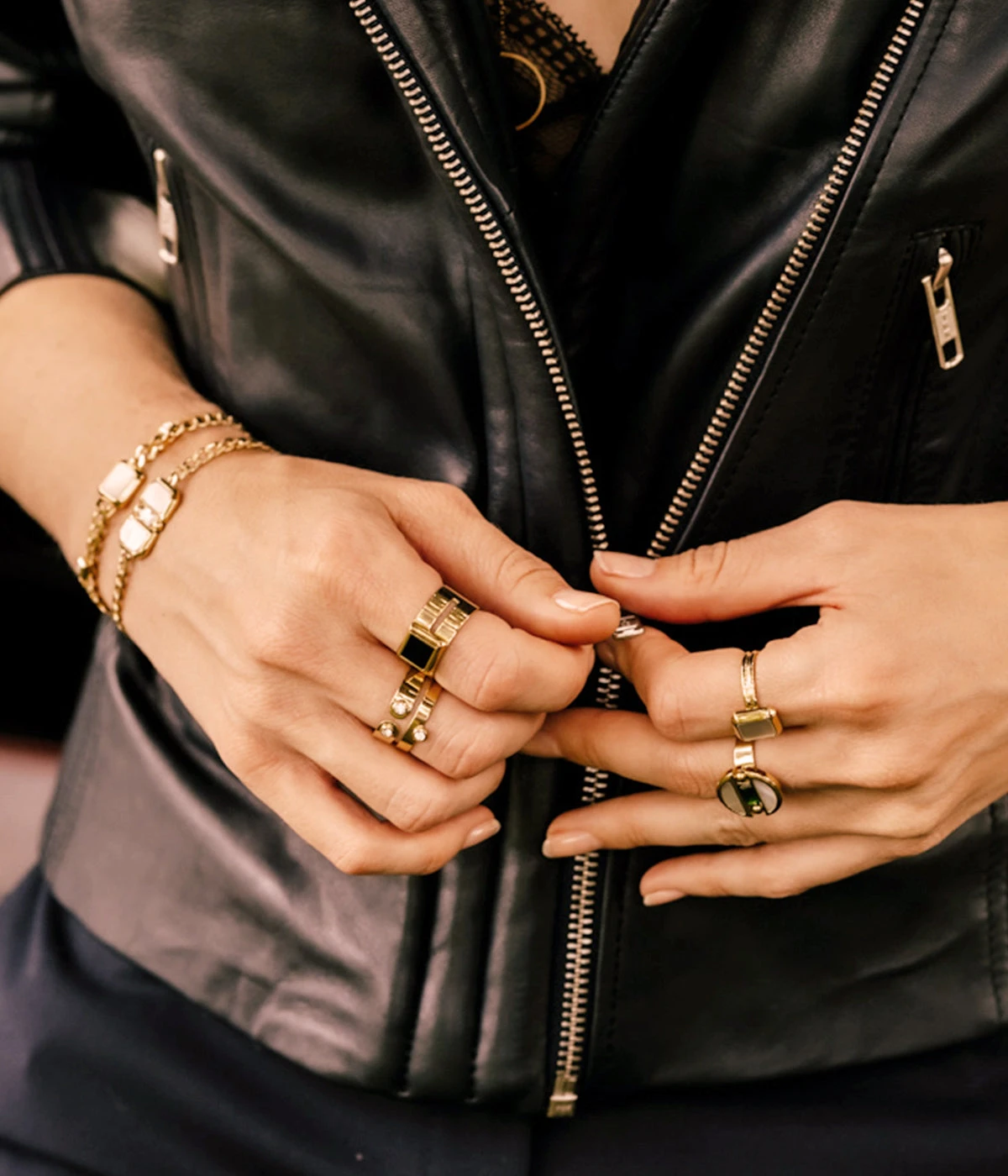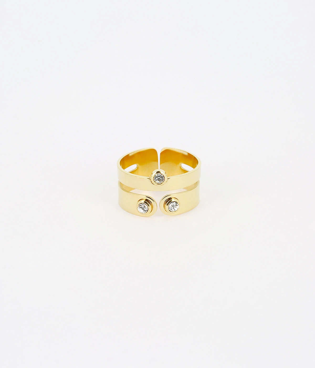 Bague ajustable en acier uni ou en acier doré à l’or fin. Cette bague très confortable est ornée de trois zirconiums.