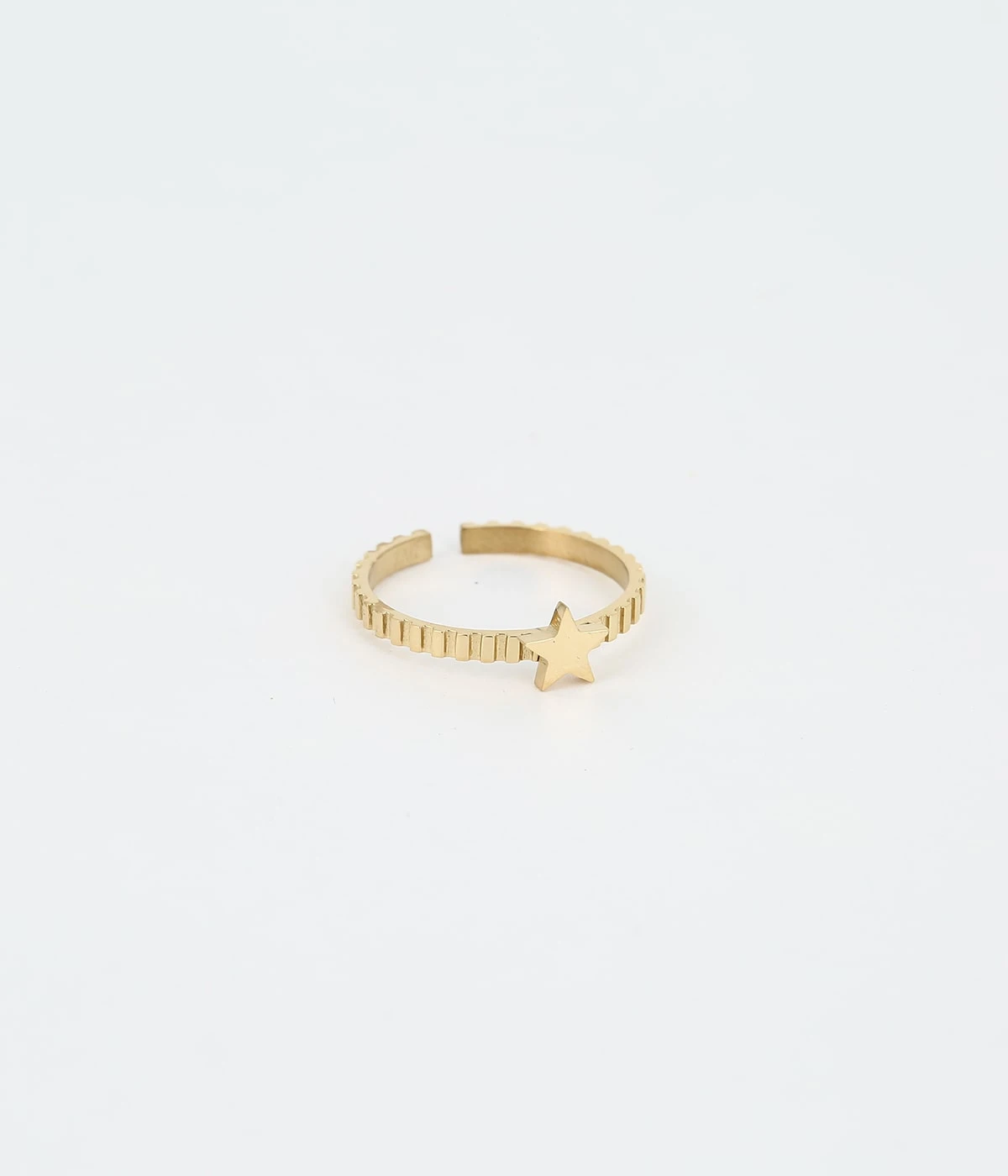 Bague ajustable en acier uni ou doré à l’or fin avec en son centre une étoile.