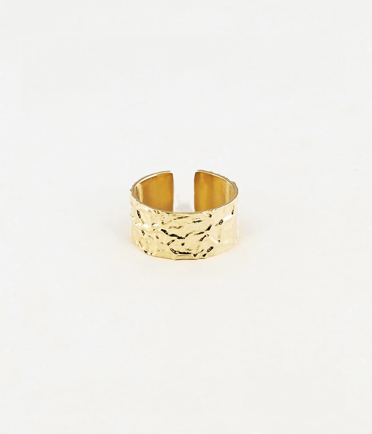 Le métal martelé donne une identité très ethnic chic à ce bijou.