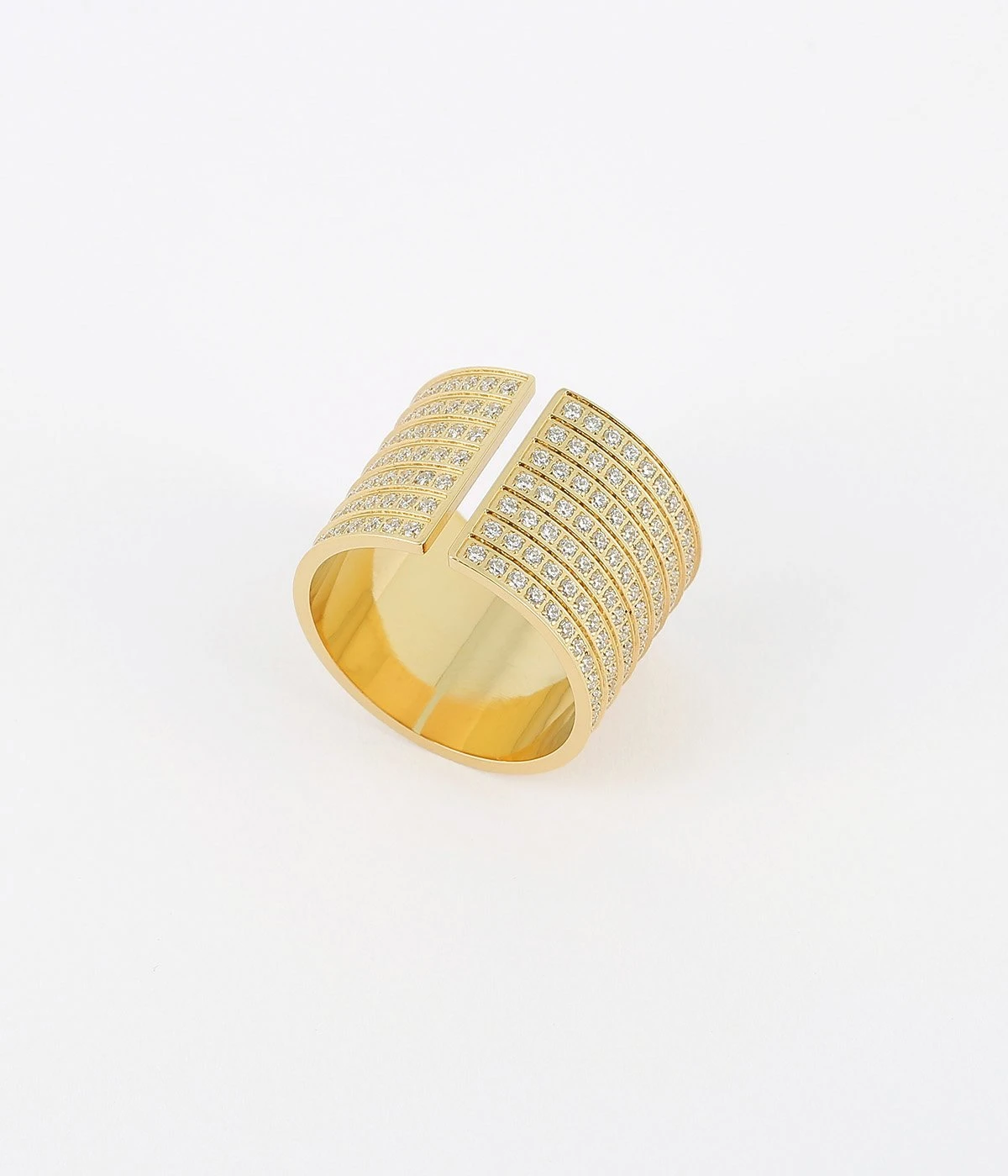 Cette bague est probablement la plus précieuse de nos collections, elle rappelle le faste New Yorkais et brille de mille feux sous la lumière du soir.
