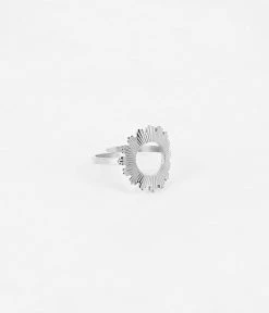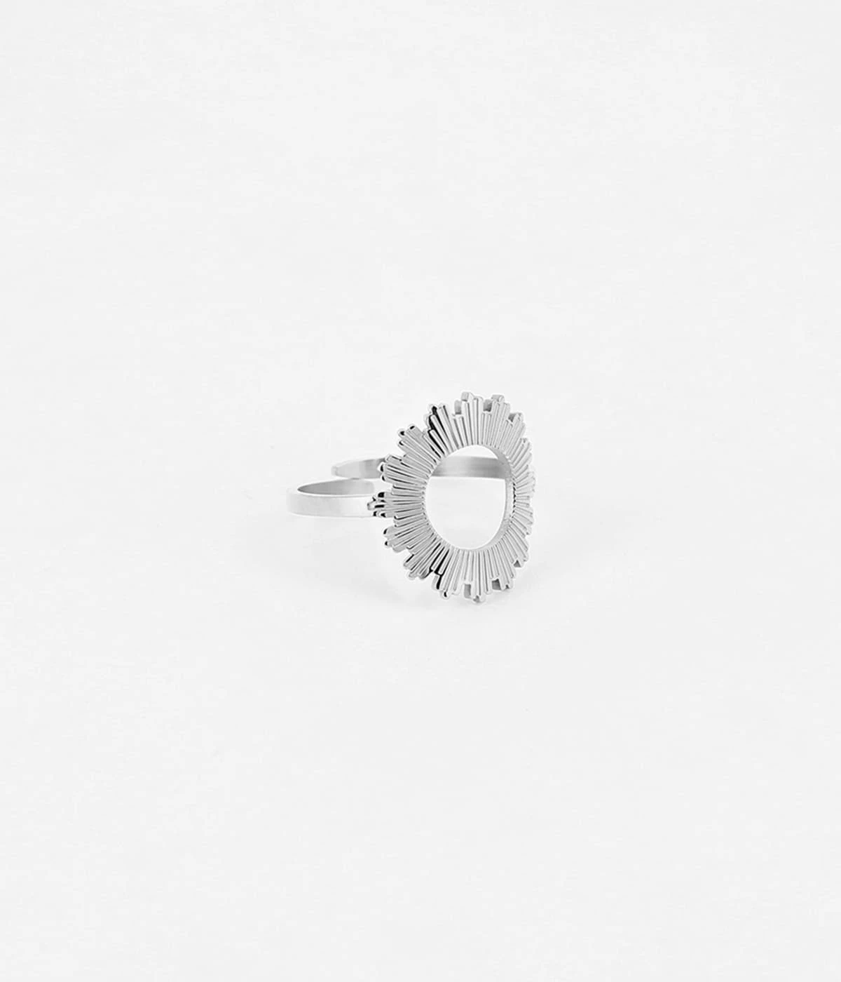 Une rondelle de métal y est finement ciselée à la main rappelant un motif de soleil contemporain.