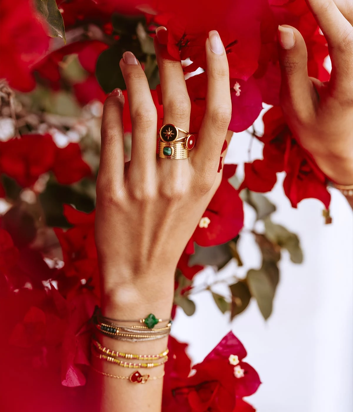 Coloré, ce petit bijou est ravissant sur une main bronzée.