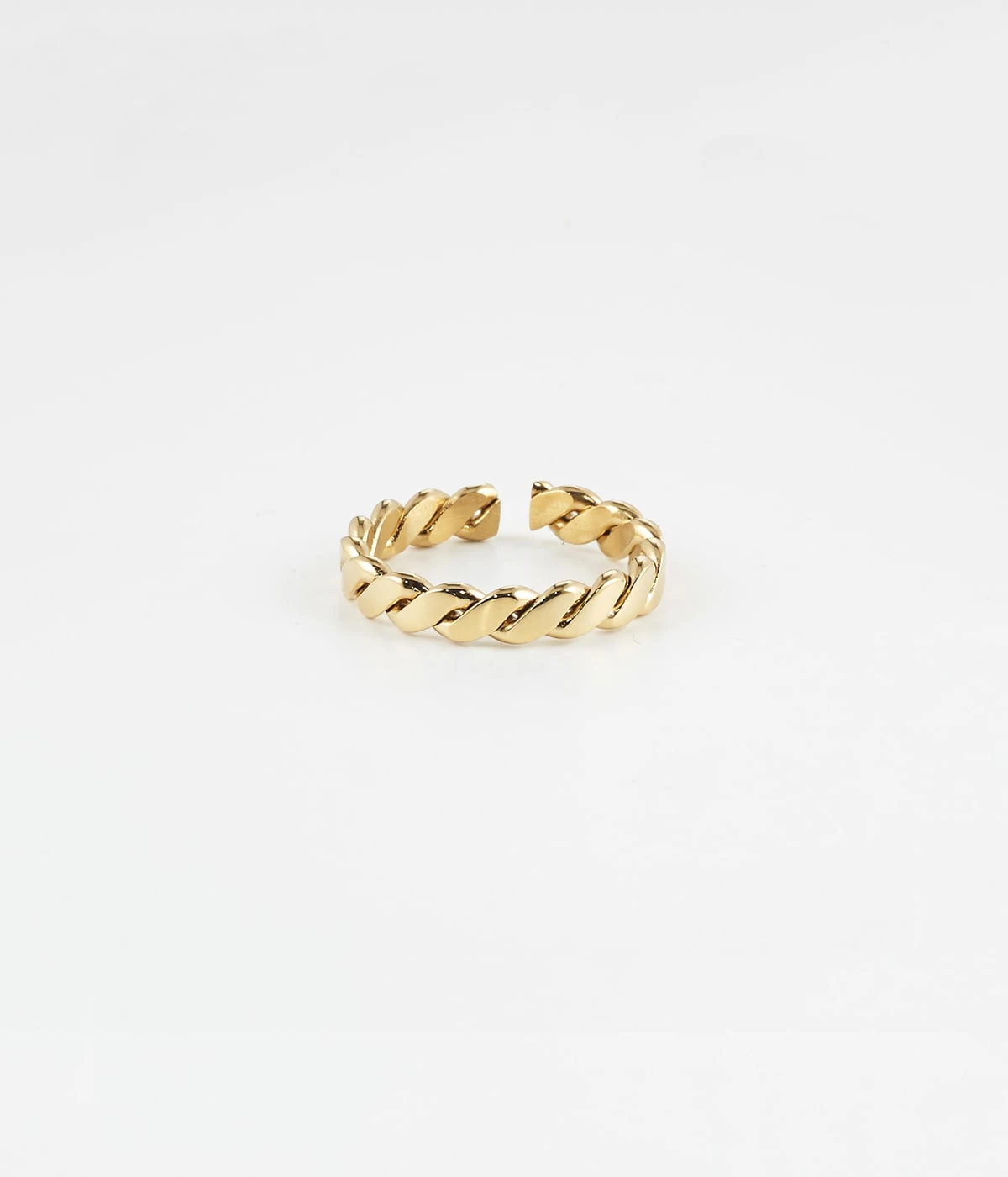 Très belle tresse d’acier uni ou doré à l’or fin pour cette bague ajustable.
