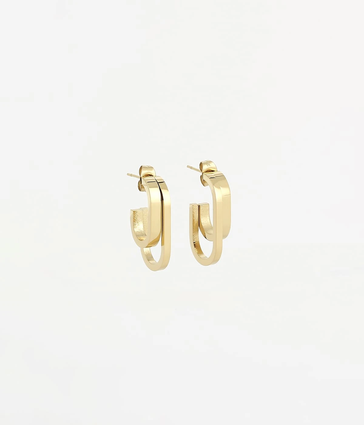 Formées de deux anneaux géométriques de différentes tailles, ces boucles d’oreilles ont une allure très contemporaine.