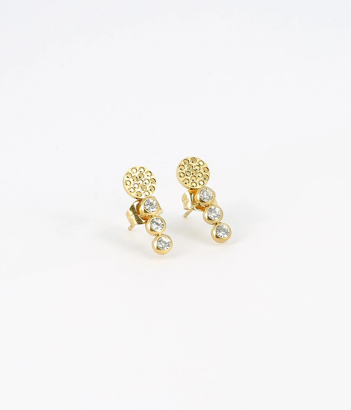 Mini boucles d’oreilles puces en acier uni ou doré à l’or fin et zirconiums brillants. Ces boucles d’oreilles sont formées de deux petites barrettes serties de zirconiums.
