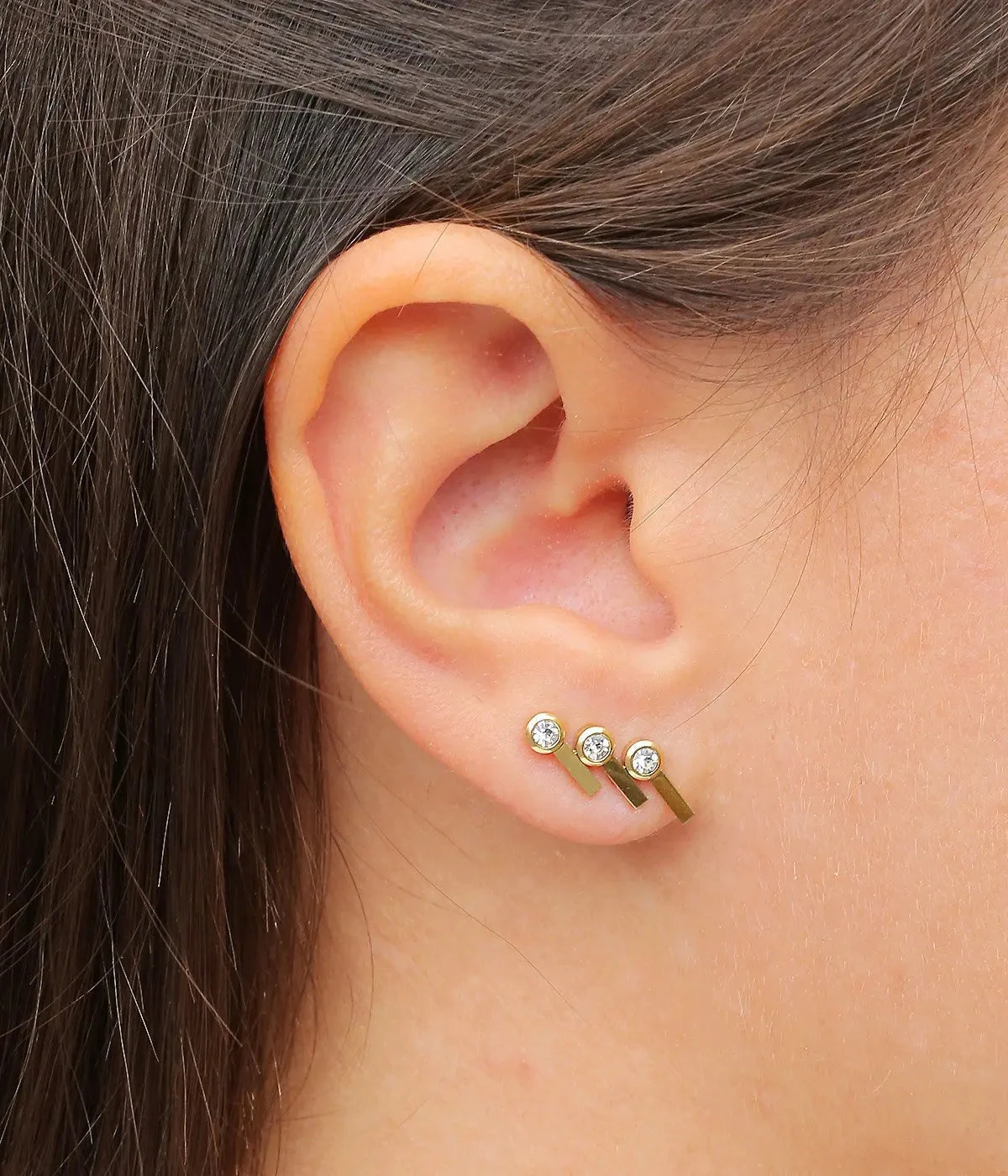 Ces boucles d’oreilles s’ajustent sur le lobe avec élégance formant comme une barrette graphique.