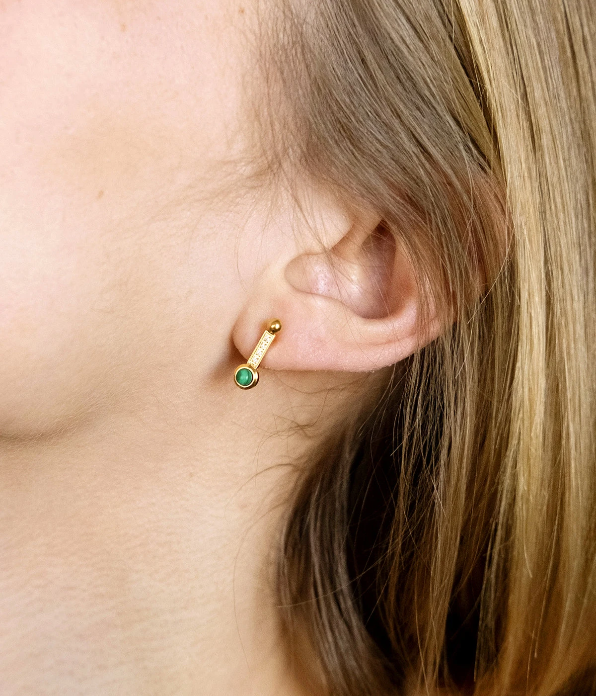 Boucles d’oreilles en acier doré à l’or fin composées de pierre naturelle et de zirconiums.