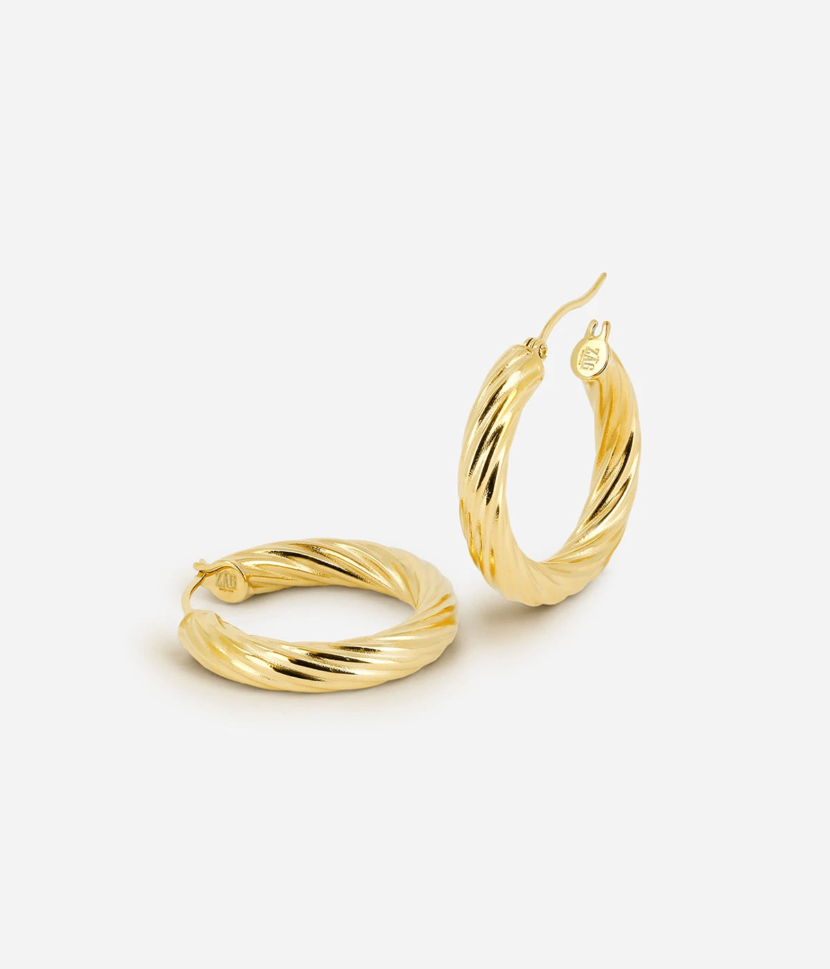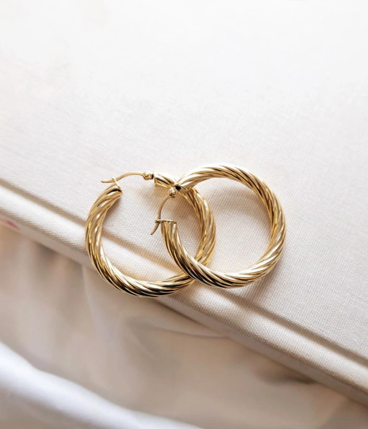 Boucles d’oreilles créoles en acier uni ou doré à l’or fin torsadé.