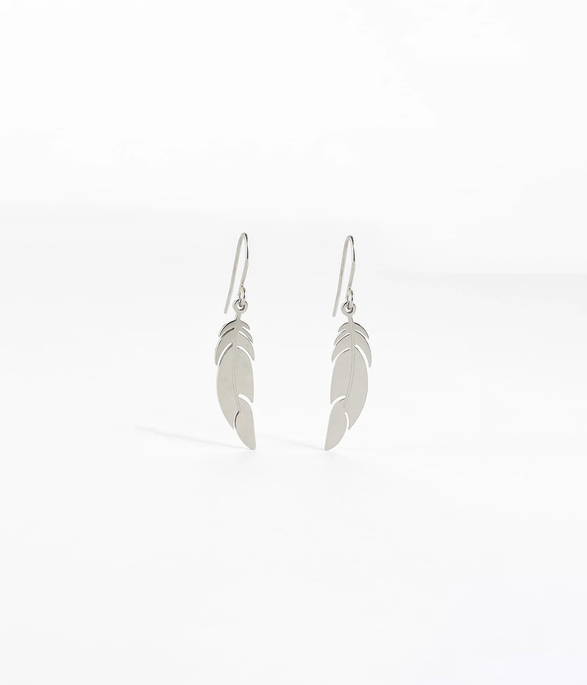 Boucles d’oreilles dormeuses en acier uni ou doré à l’or fin sur lequel est attaché un motif de plume ciselé.