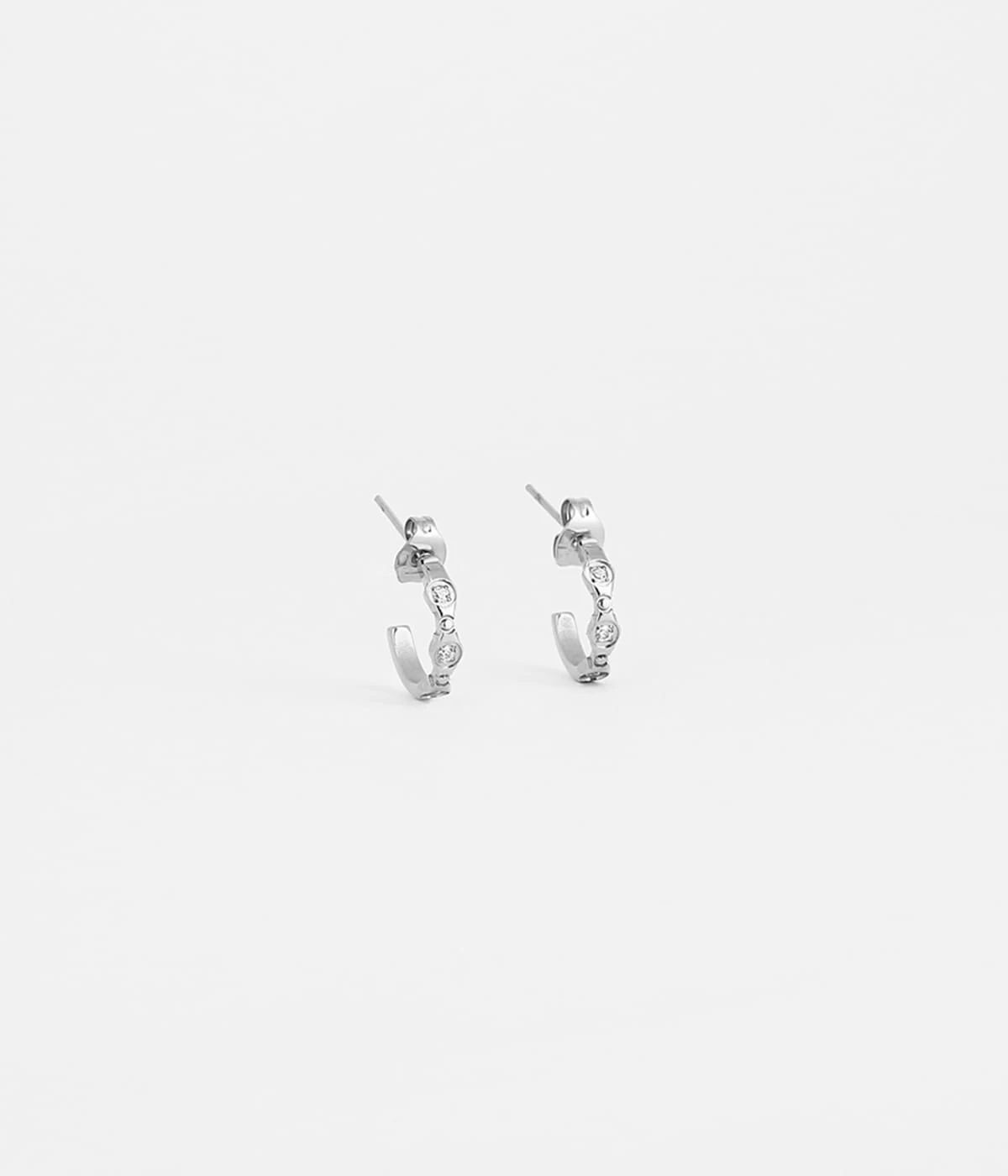 Boucles d’oreilles en acier uni ou doré à l’or fin serties de 3 zirconiums.