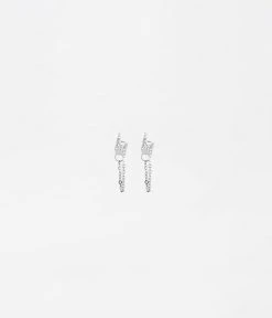 Boucles d’oreilles chaînettes en acier uni ou doré à l’or fin en forme d’éclair et pavés de zirconiums.