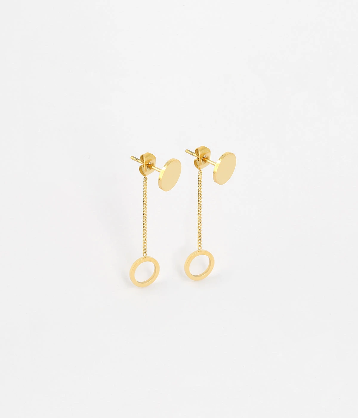 Boucles d’oreilles en acier uni ou doré à l’or fin très géométrique.