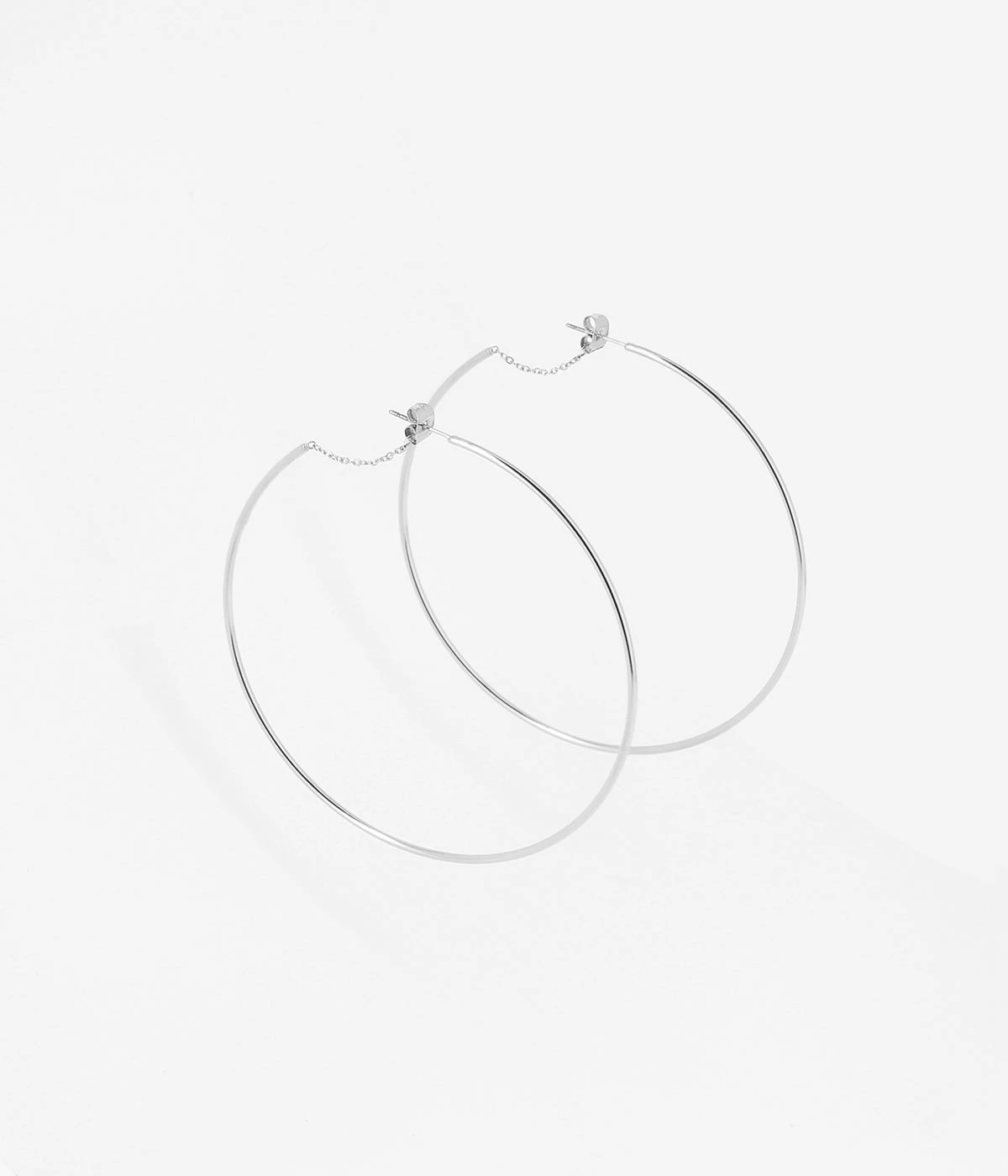 Boucles d’oreilles en acier uni ou doré à l’or fin. Une chaînette relie le bout de la créole au fermoir papillon.