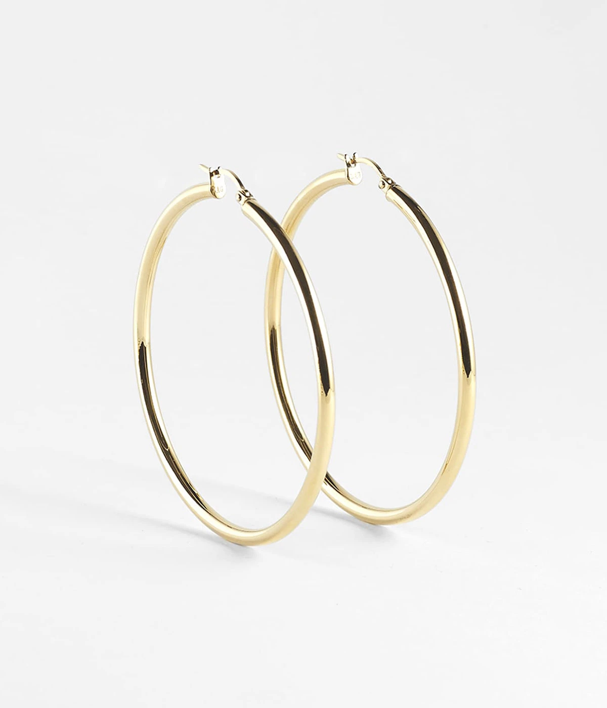 Boucles d’oreilles créoles en acier uni ou doré à l’or fin.