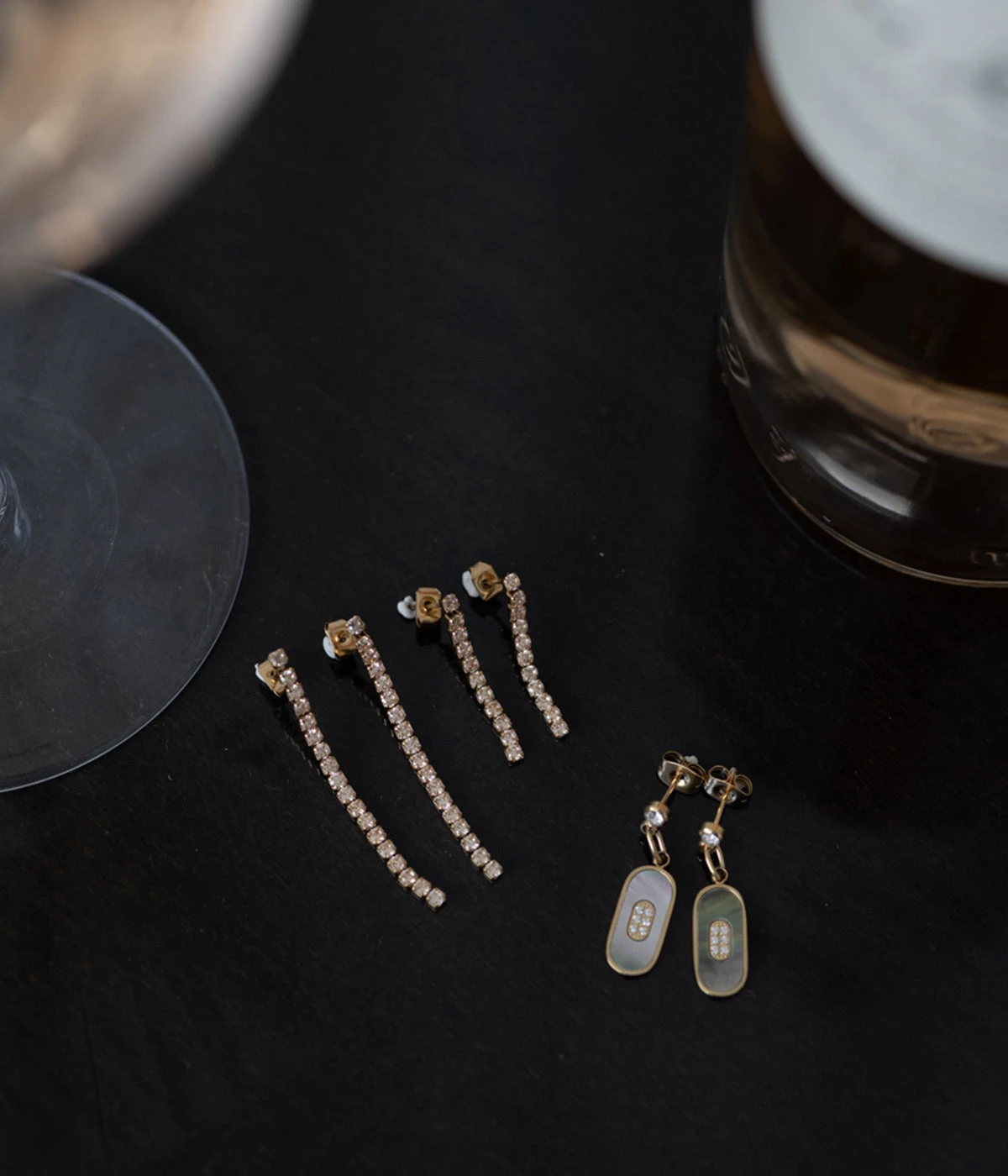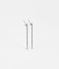 Boucles d’oreilles en acier uni sur lequel des zirconiums se succèdent avec un sertissage carré.