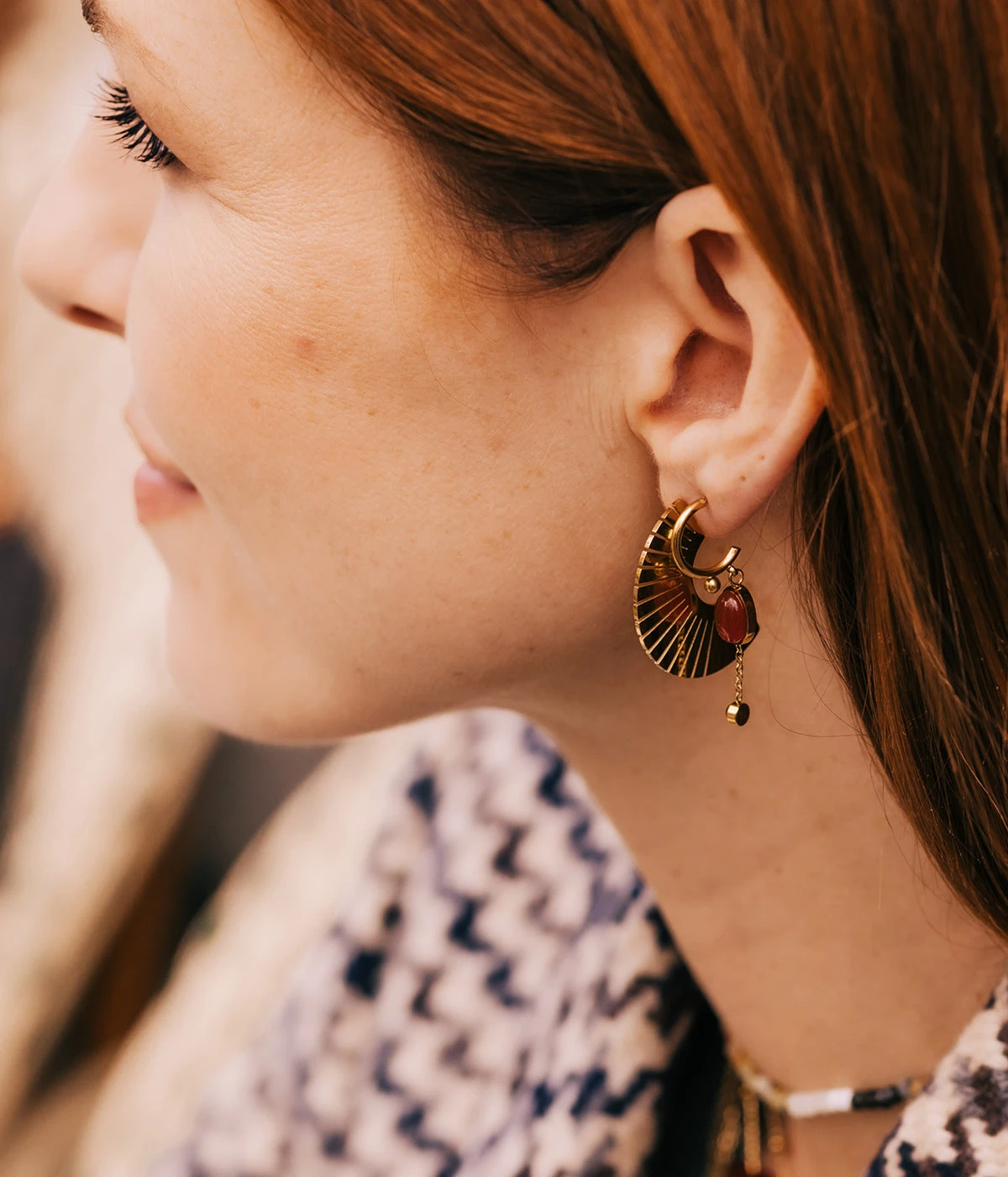 Boucles d’oreilles créoles en acier uni ou doré à l’or fin imitant une demi-lune.