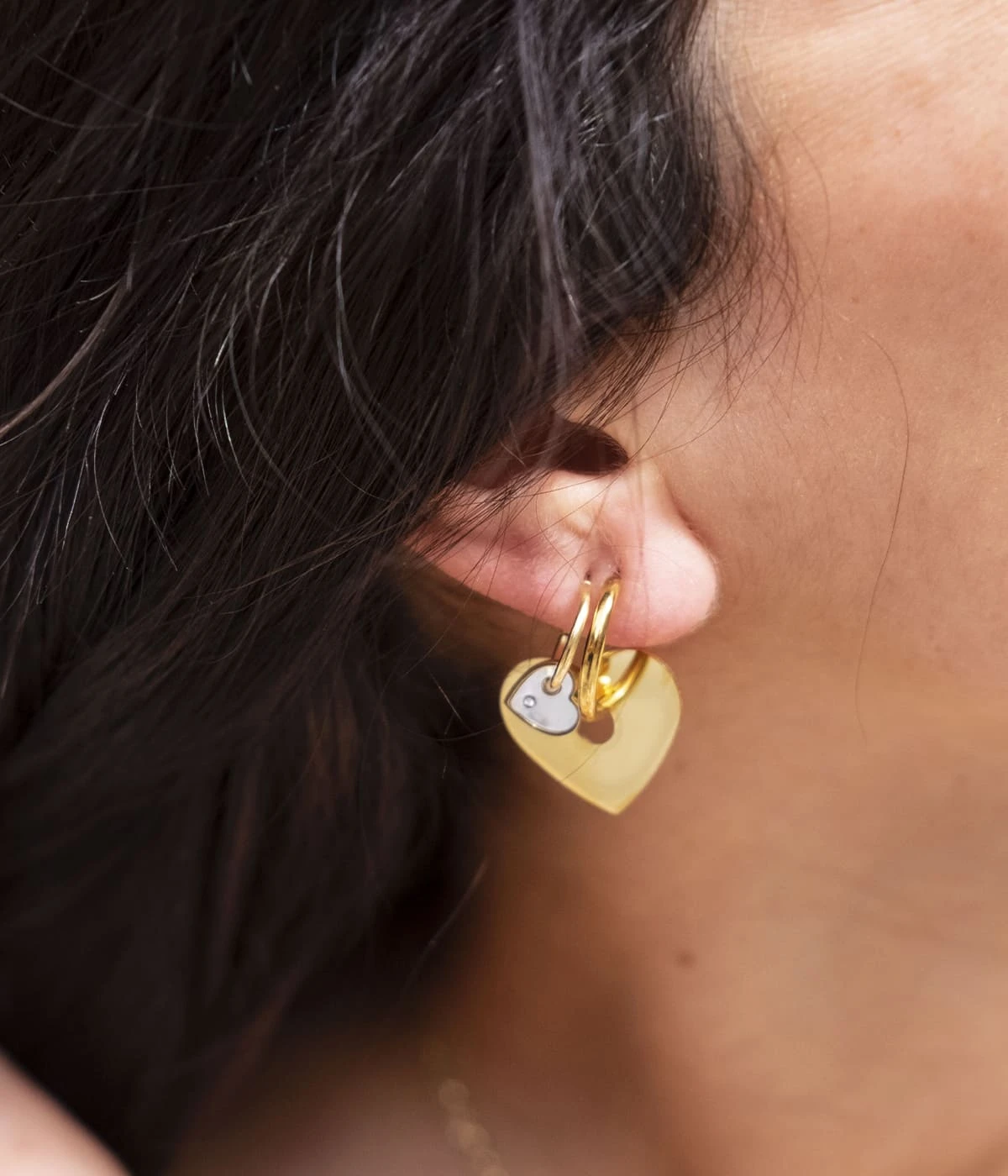 Boucles d’oreilles créoles en acier doré à l’or fin sur lesquelles est suspendu un motif coeur coloré sertie d’un zirconium.
