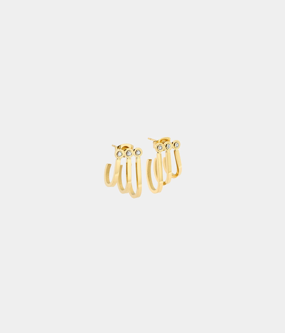 Boucles d’oreilles en acier uni ou doré à l’or fin présentant trois barrettes et trois zirconiums.