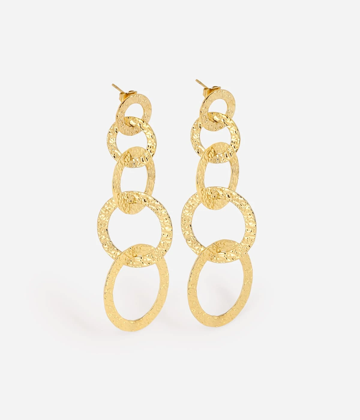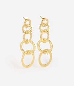 Boucles d’oreilles en acier doré à l’or fin composées de plusieurs anneaux attachés successivement.