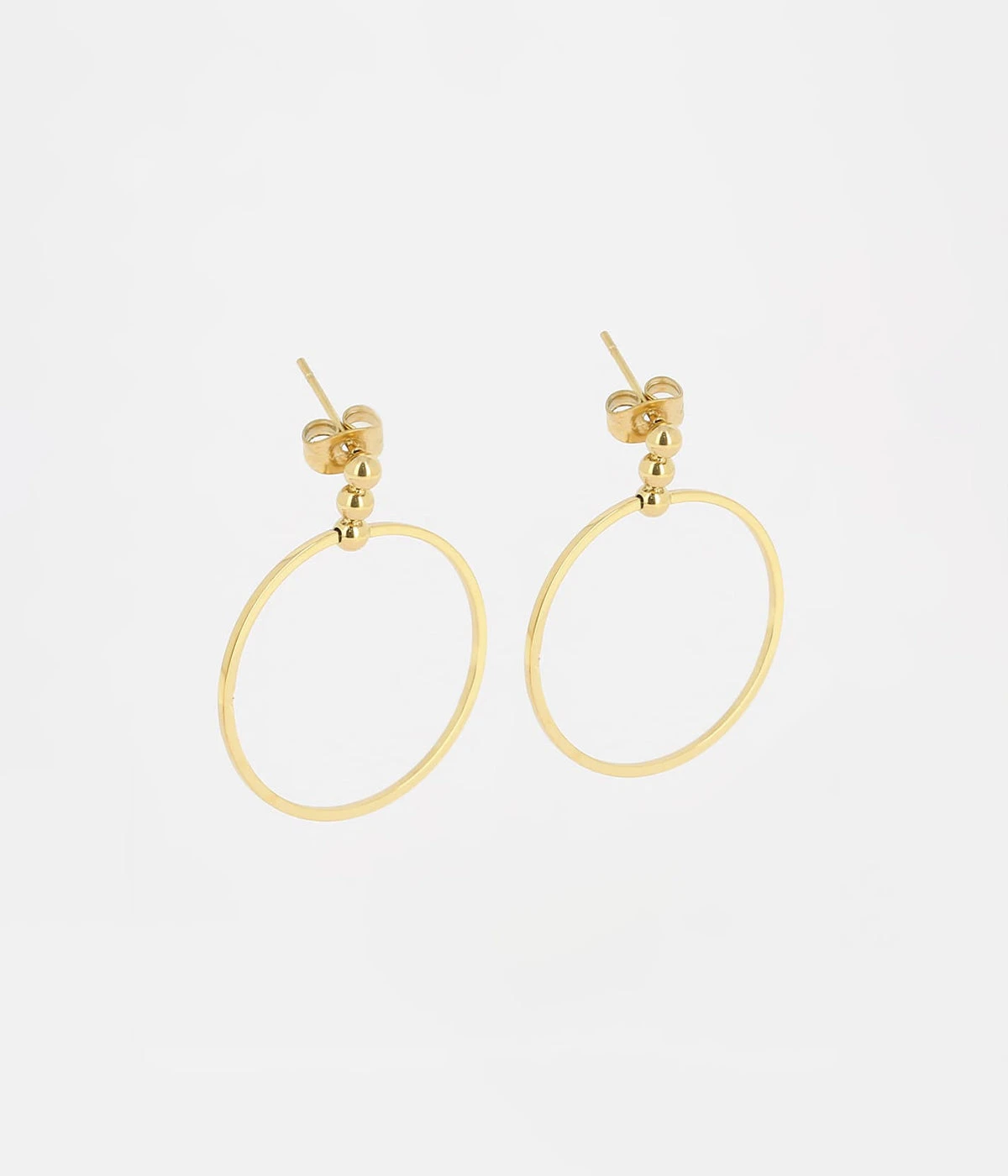 Boucles d’oreilles pendantes en acier uni ou doré à l’or fin composées d’un cercle en métal.