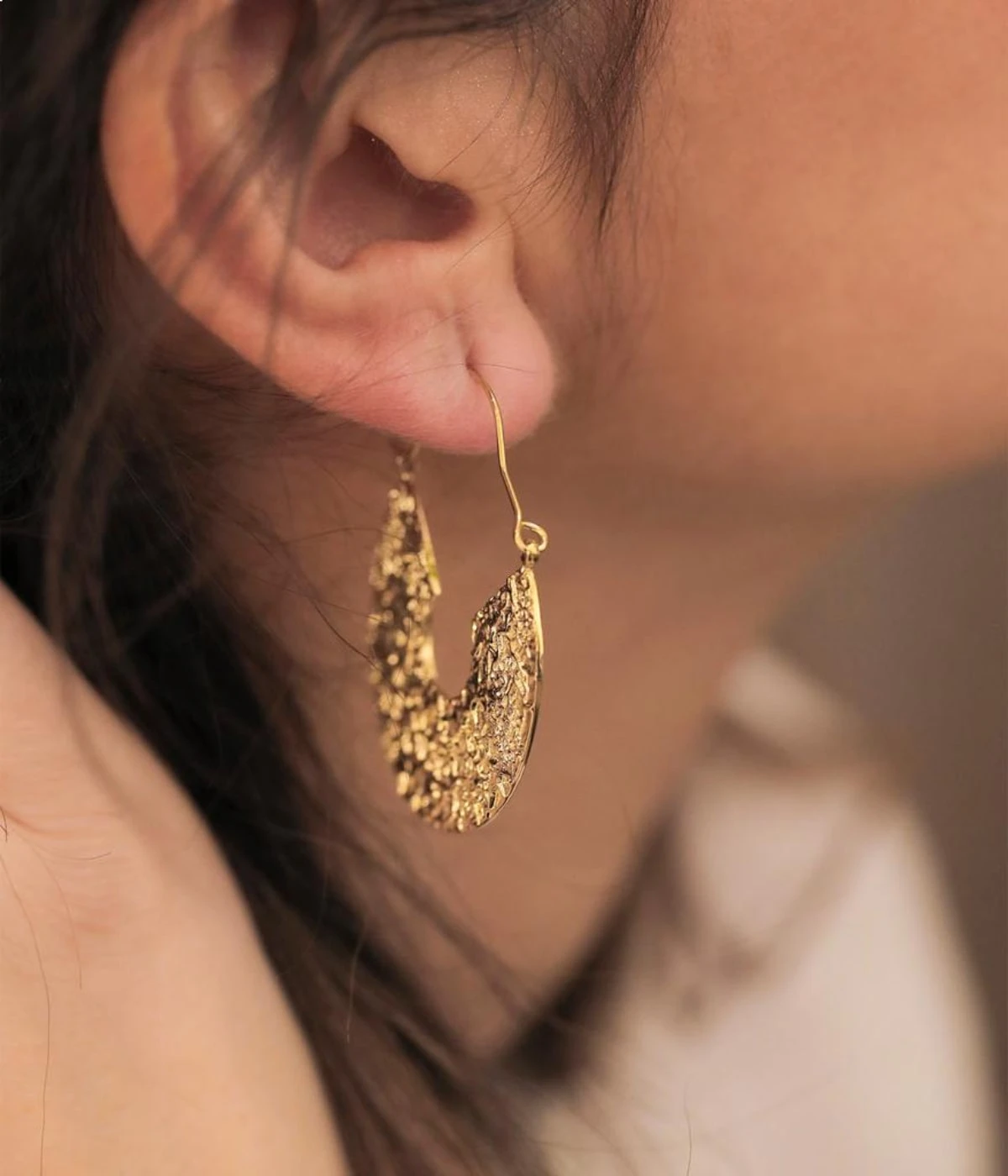 Boucles d’oreilles créoles en acier uni ou doré à l’or fin à l’aspect martelé.