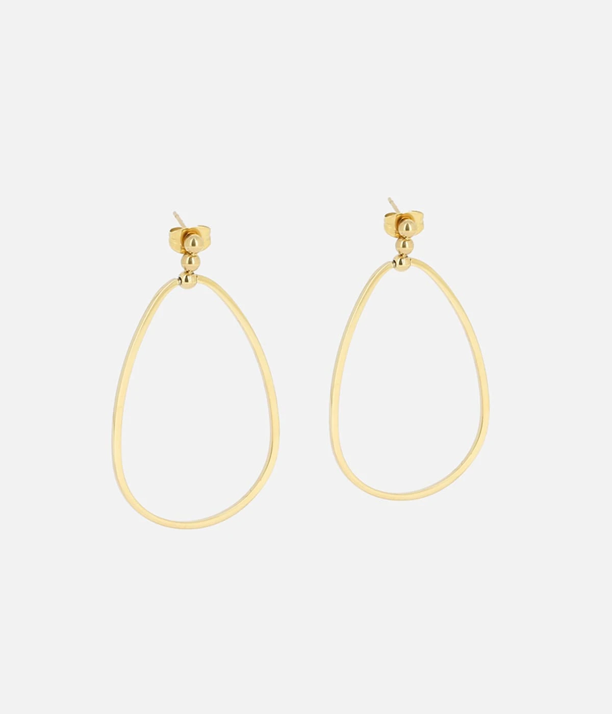 Boucles d’oreilles pendantes en acier uni ou doré à l’or fin de forme géométrique.