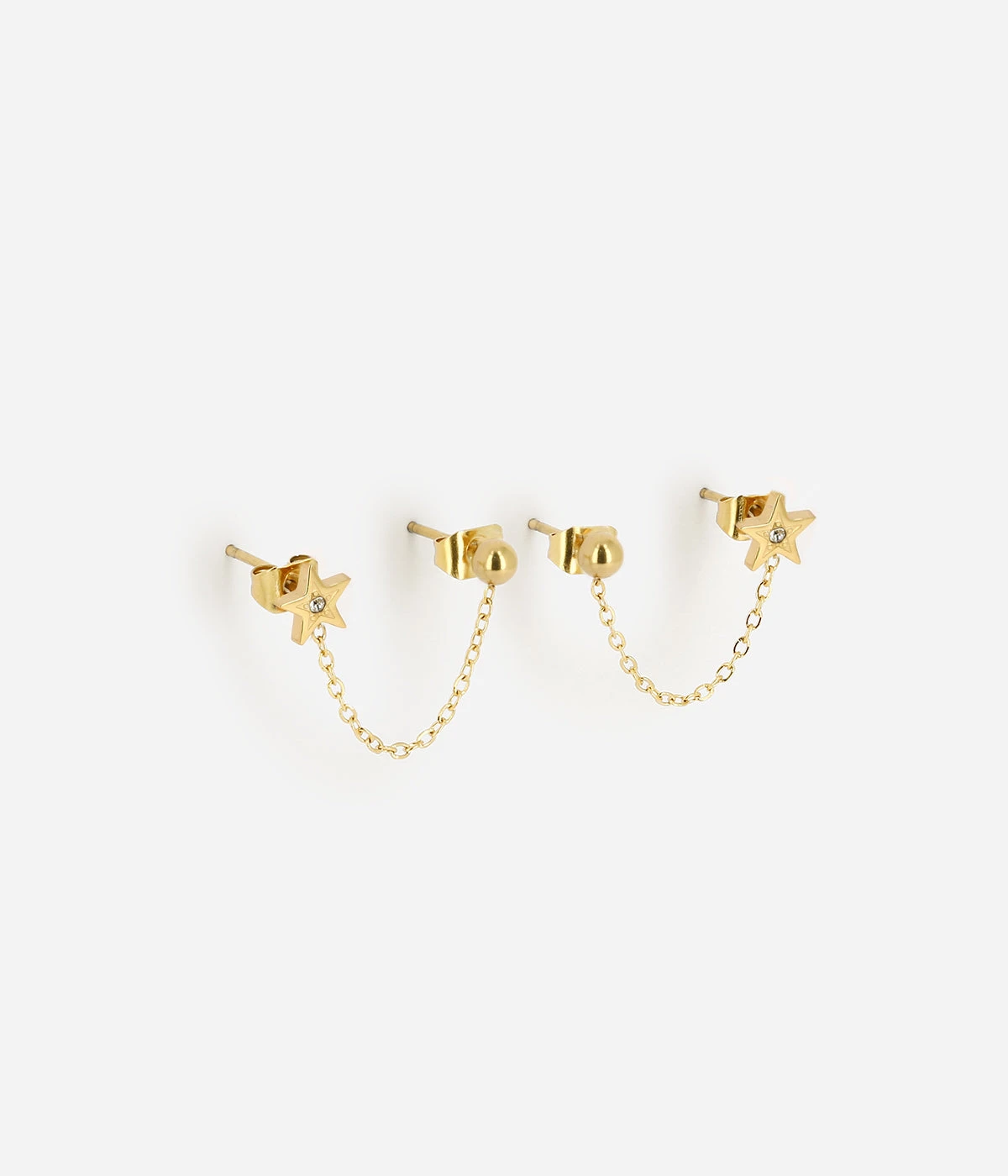 Boucles d’oreilles chaînettes en acier uni ou doré à l’or fin pour celles qui ont plusieurs piercings.