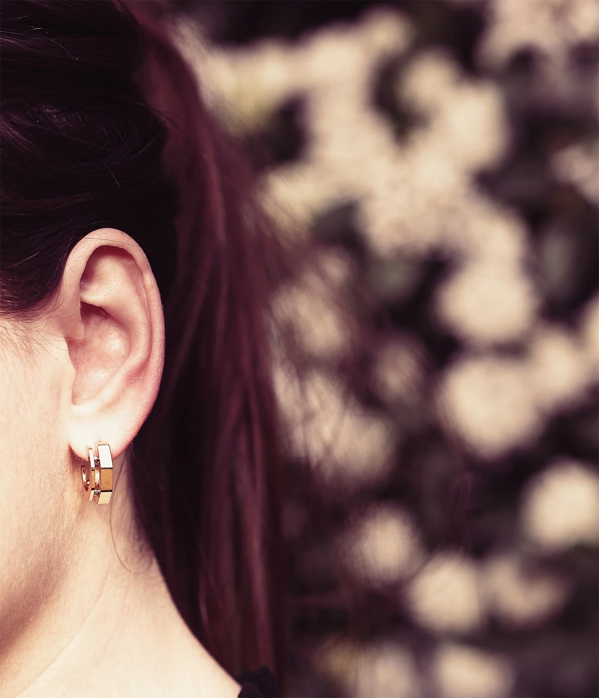 Malgré leur petite taille, elles sont formées d’un double anneau géométrique qui leur donne une allure architecturale et moderne.