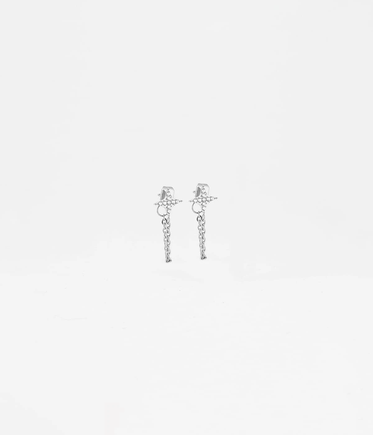 Boucles d’oreilles en acier uni ou doré à l’or fin en forme d’étoile de zirconiums pavés.