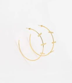 Boucles d’oreilles créoles en acier doré à l’or fin avec trois petites barrettes martelées.