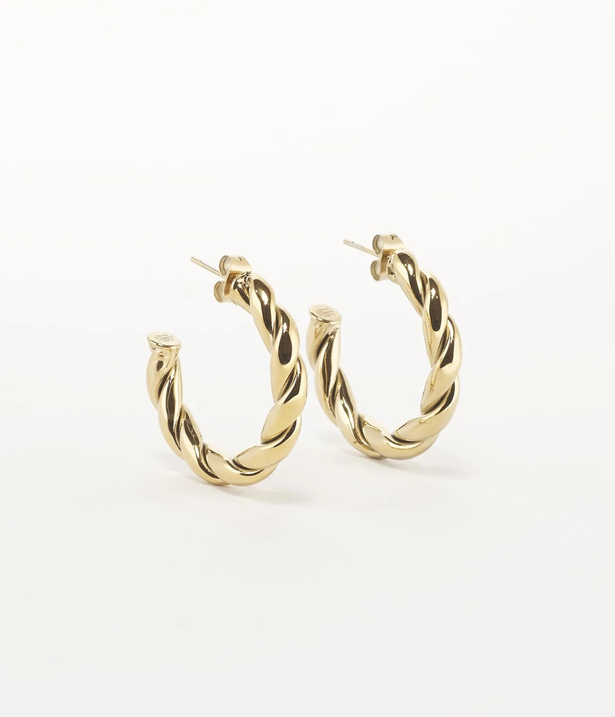 Boucles d’oreilles créoles en acier torsadé uni ou doré à l’or fin.