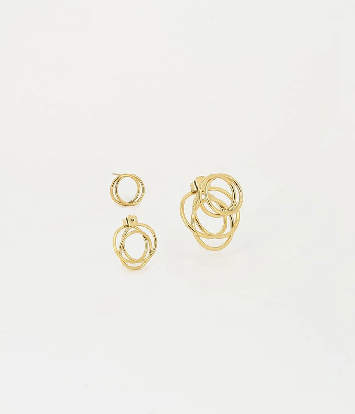 Boucles d’oreilles en acier uni ou doré à l’or fin formant des anneaux juxtaposés composées en deux parties.