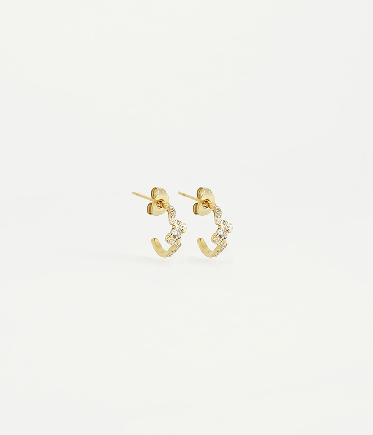 Boucles d’oreilles mini créoles en acier uni ou doré à l’or fin sur lesquelles sont sertis des petits zirconiums brillants.