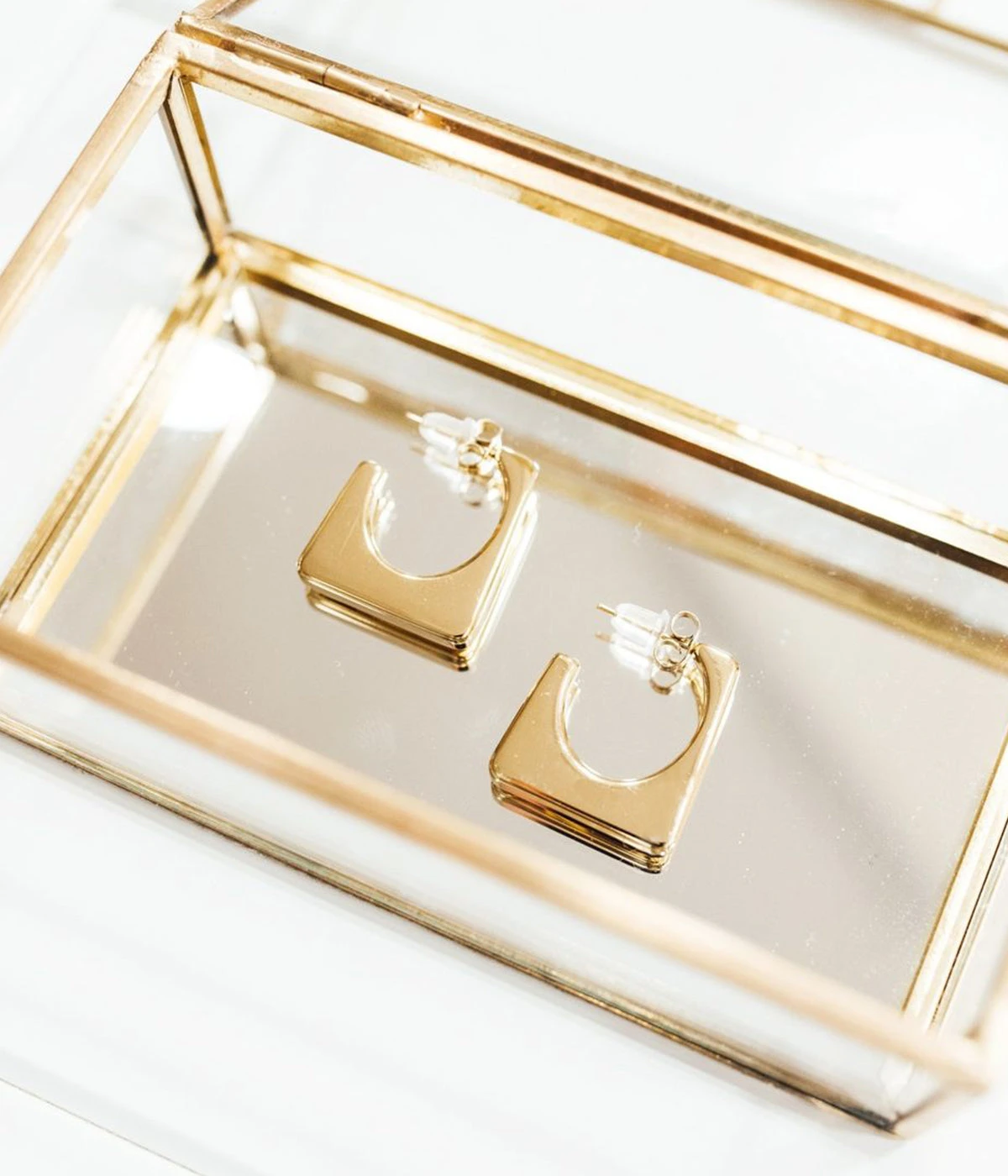 Ces boucles d’oreilles très géométriques sont inspirées de l’architecture futuriste de certaines villes.