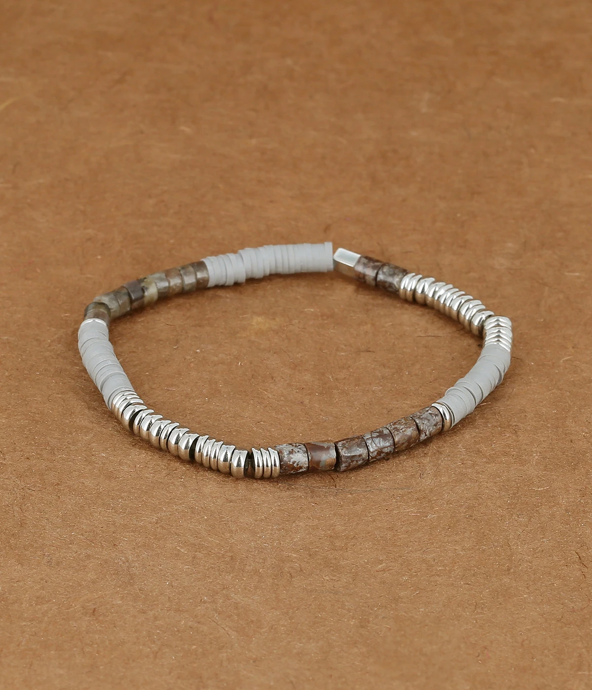 Ce bracelet est parfait porté seul ou en accumulation avec d’autres bracelets de notre collection homme.