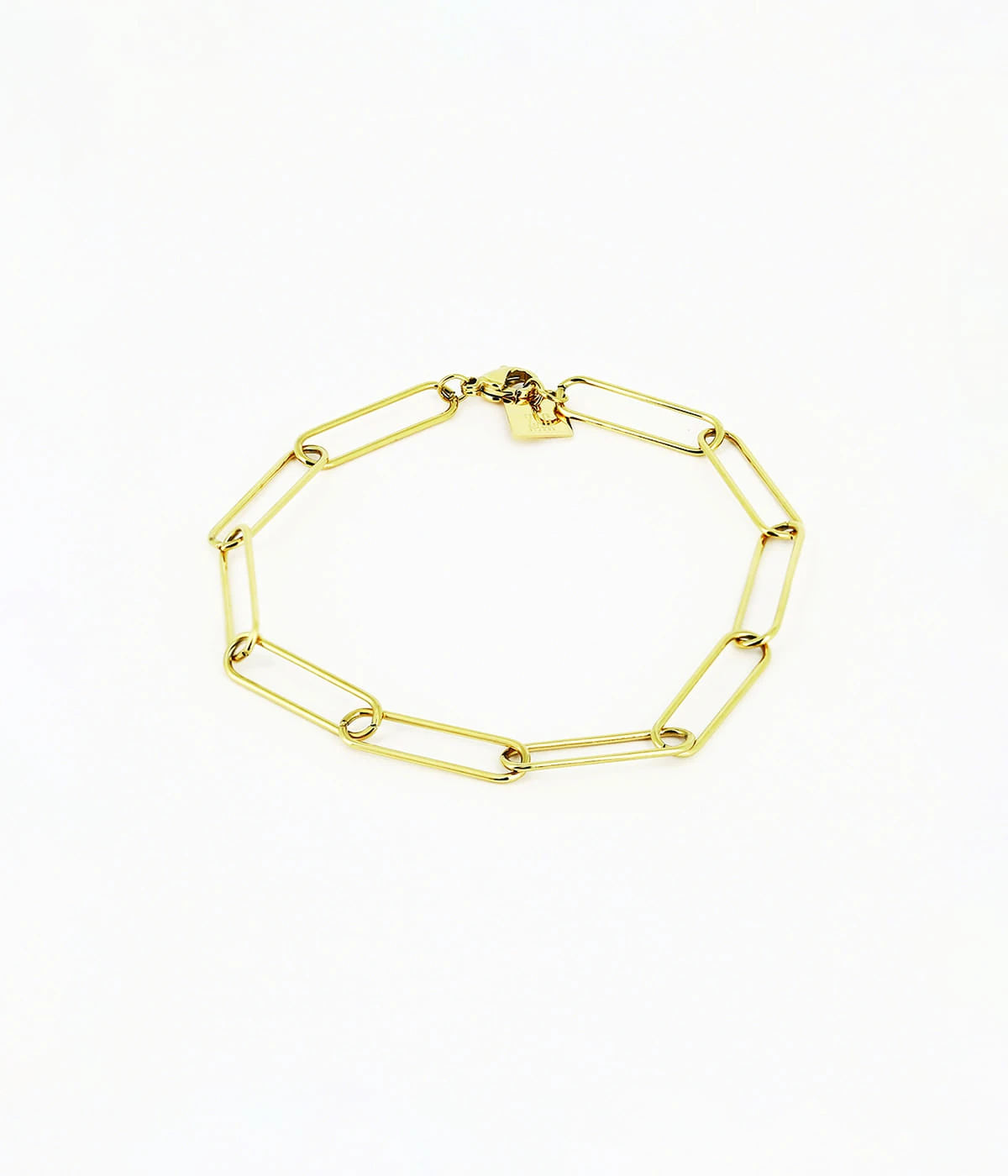 Bracelet maillons de forme allongée façon trombones entrelacés, en acier doré à l’or fin.