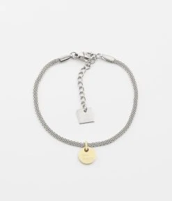 Bracelet chaîne grains de riz en acier uni ou doré à l’or fin, sur lequel est attachée une petite médaille gravée du message “Be happy”.