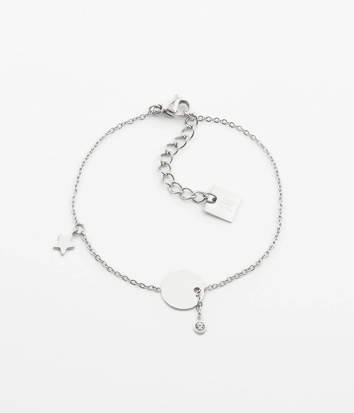 Une petite étoile porte-bonheur et un petit cristal blanc en serti clos bougent sur le poignet avec malice.