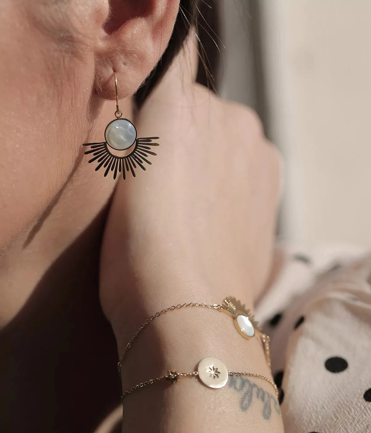 - Décliné en collier et boucles d’oreilles