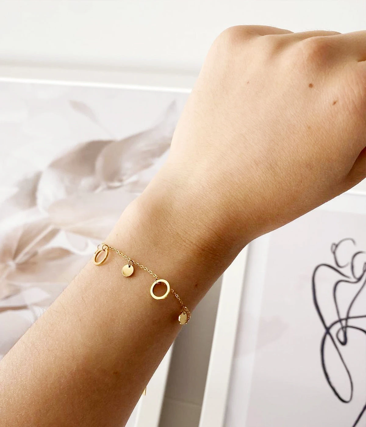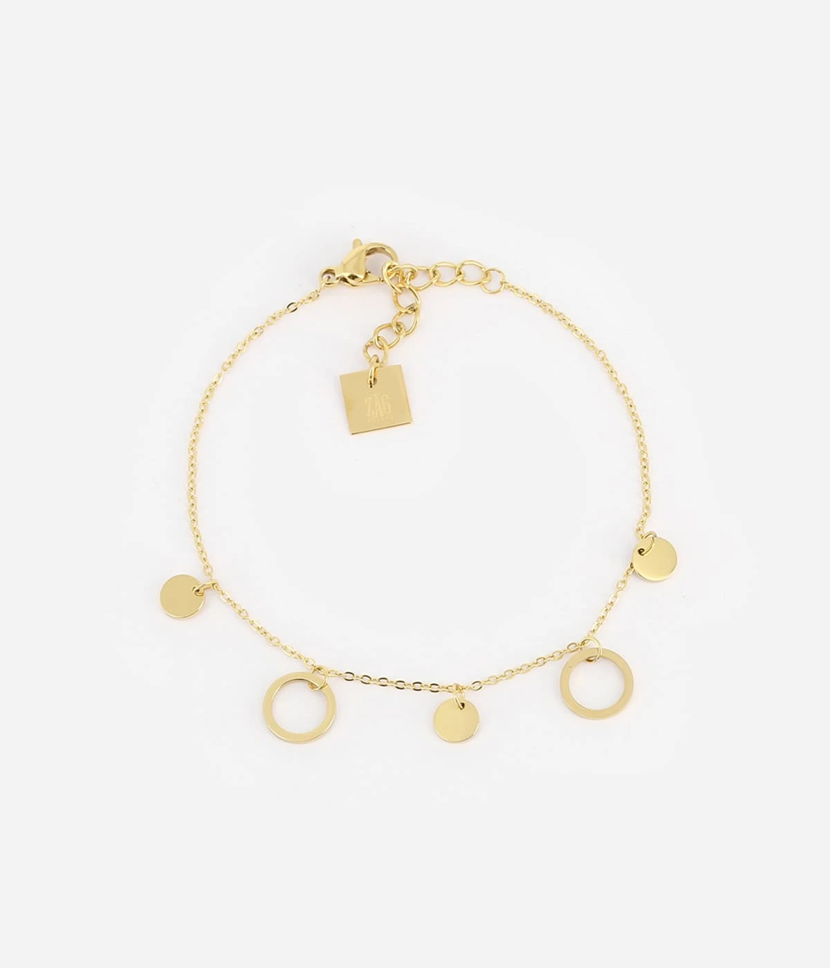 Bracelet chaîne en acier uni ou doré à l’or fin sur lequel sont attachées des petites pampilles.